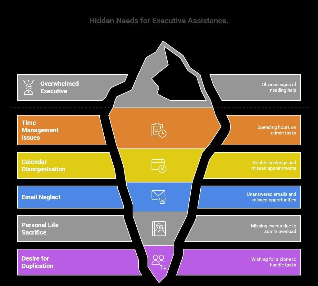 How Do You Know You’re Overwhelmed and Need an Executive Assistant? First, understand your routine and how you’re actually spending your time. If most of your morning goes into meetings and checking your inbox, and you’re constantly interrupted, you need to think about it. When your strategic work gets pushed to after hours, that’s a clear sign you need help. You weren’t made to do $10 tasks. You’re running a business that needs you, the main person driving revenue, not someone buried in nitty-gritty details.