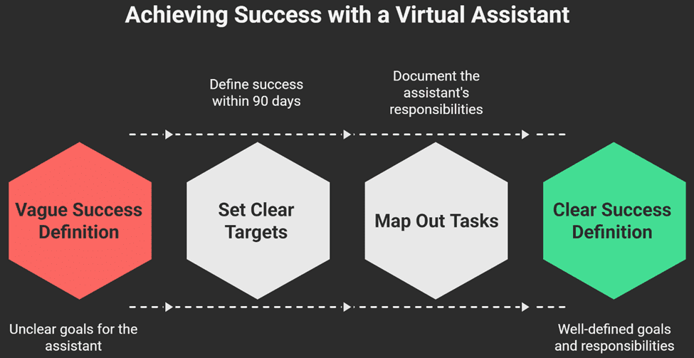 Before posting anything, get specific about what success looks like. Not “someone to handle my calendar”, that’s too vague. Within ninety days, what should actually change? Maybe it’s reclaiming ten hours a week for strategic work. Maybe it’s walking into every meeting fully prepared. Maybe it’s ending each day with an empty inbox.