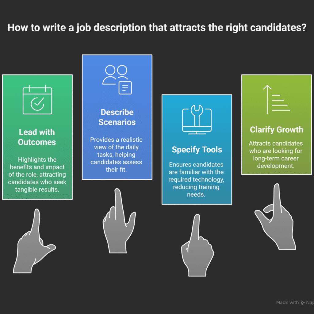 Generic posts attract generic candidates. Your job description should make the right person think, “This is exactly what I’m looking for.”