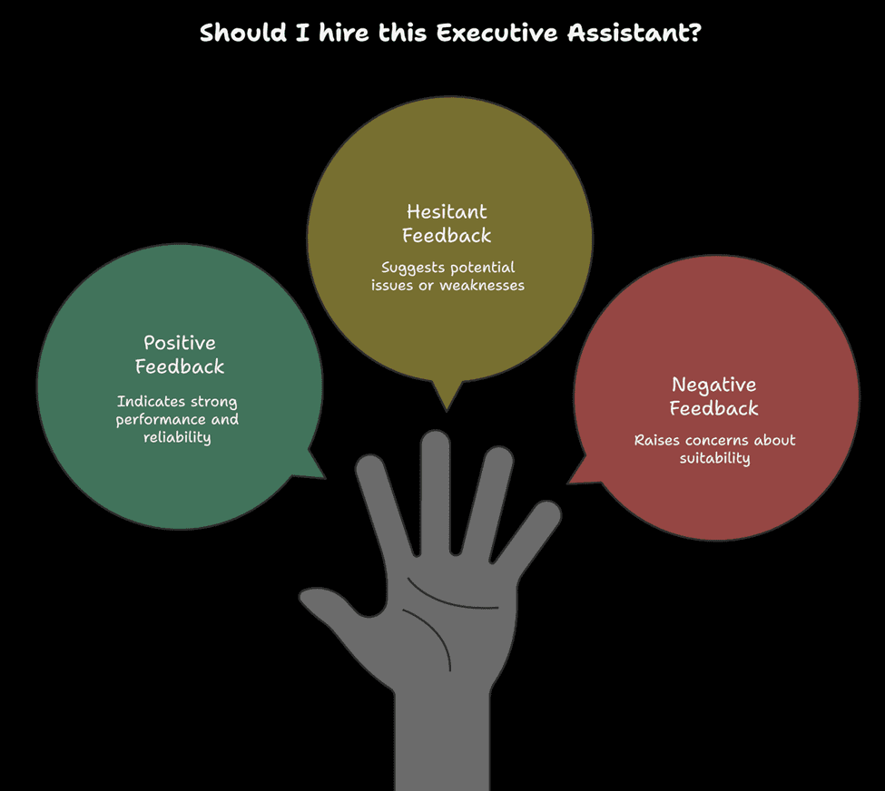 Talk to past executives and ask questions that matter. How did this EA handle pressure and last-minute changes? Did they anticipate or just react? How did they handle mistakes? Would you rehire them, and if not, why not?